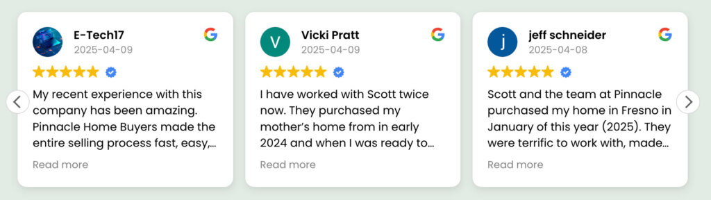 There are many cash buyers in Fresno, CA who want to buy your home. Our intent is different. We want to invest in the local area, but our eyes are focused on something big. We want to be your guide, your go-to-resource at an hour of need. At Pinnacle Home Buyers, we have helped many families who wanted to save their homes from foreclosure. We didn’t buy those properties, but we helped those people in dealing with the situation. We’re problem-solvers first, entrepreneurs second.